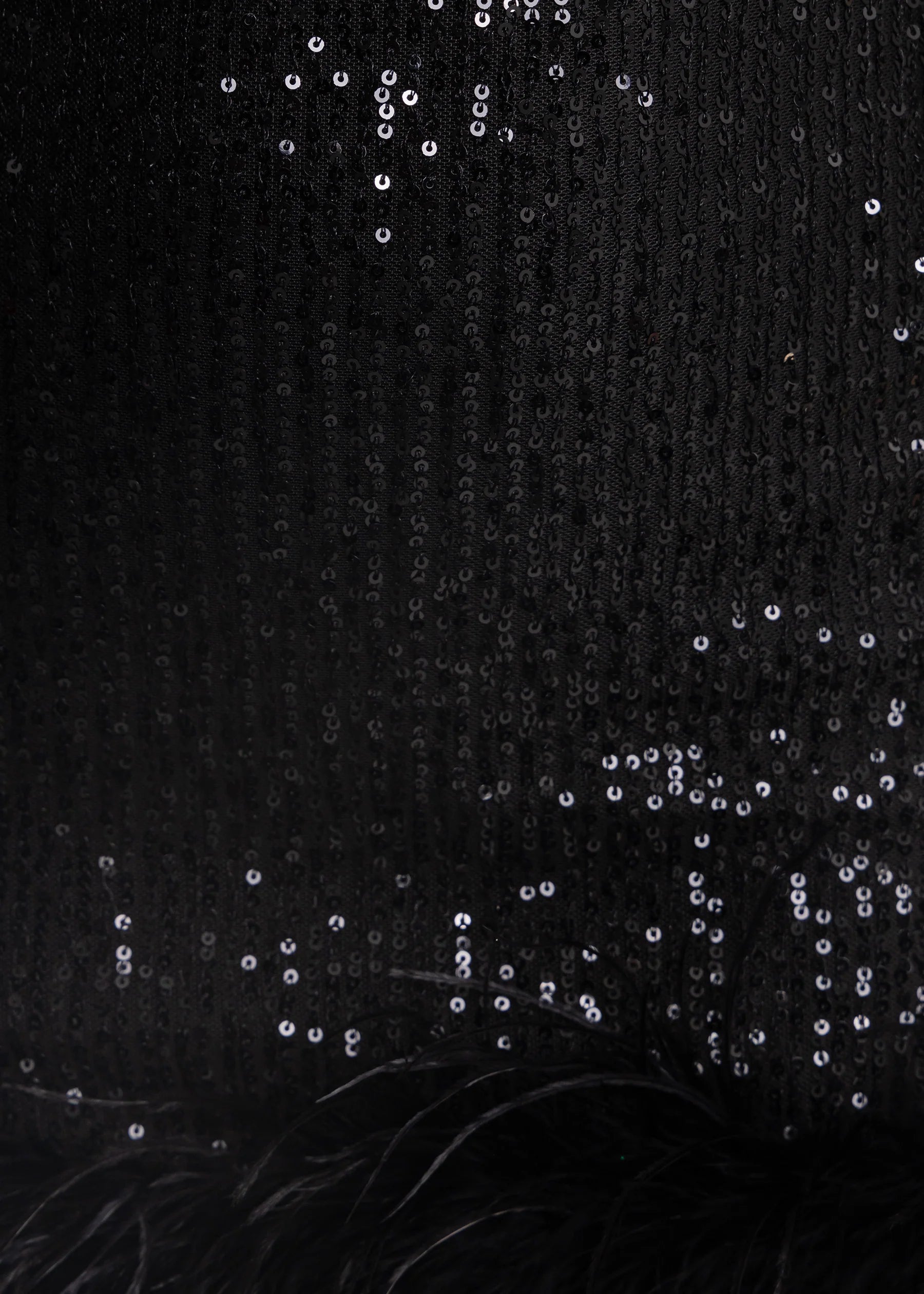 Dare to captivate in Untamed Aura, a statement mini dress designed for unforgettable nights. Crafted with shimmering black sequins that catch the light from every angle, this dress radiates bold sophistication. The daring open back adds an alluring edge, while the luxe black feather trim at the hemline brings a touch of drama and movement. Perfect for any occasion where you want to be the star of the party!